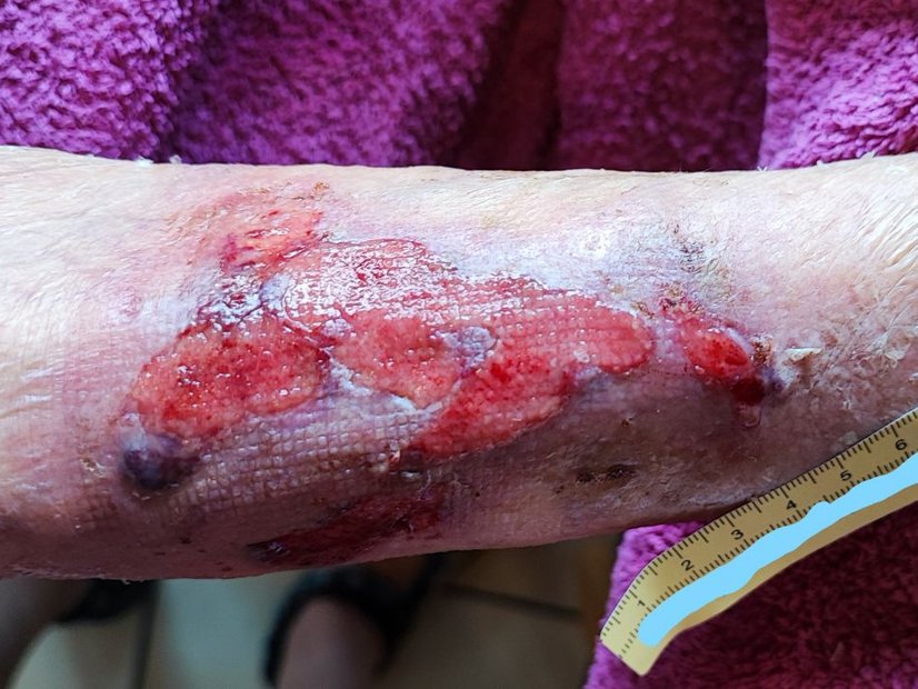- Patienten mit Cortison- bzw. Altershaut sind für diese Art von Verletzung anfälliger, da bei ihnen die Hautstabilität geringer ist