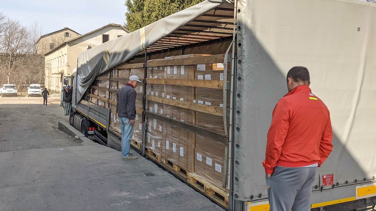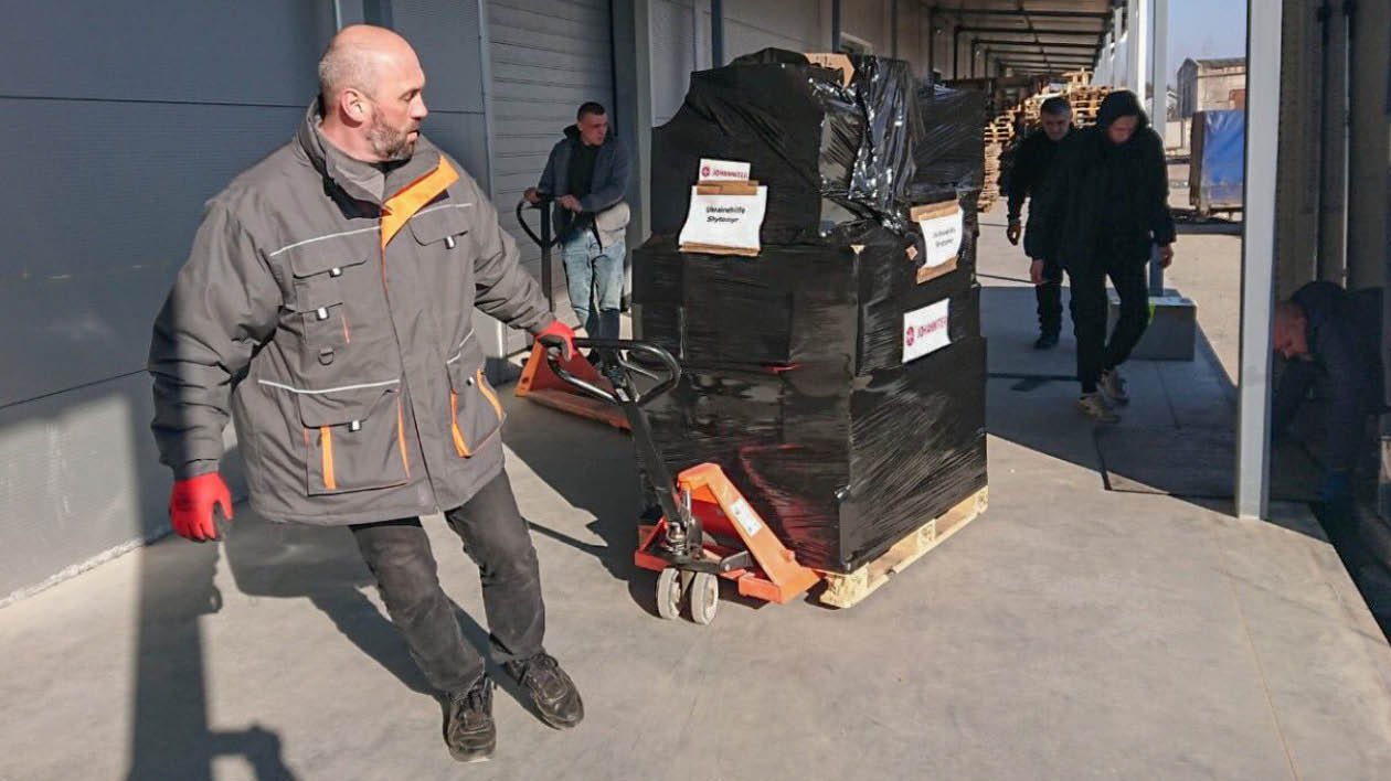 Mitarbeiter von uns haben sich dazu noch vor Arbeitsbeginn organisiert und Verbandmittel mit Anwendungshinweisen in ukrainischer Sprache beklebt. So stellen wir sicher, dass die Materialien schnell und sicher dort ankommen, wo sie gebraucht werden. Wir konnten mit Hilfe unserer Partner, den Johannitern, Apotheker ohne Grenzen und den Maltesern, rund 400 Paletten Verbandmaterial auf den Weg in die Ukraine bringen.