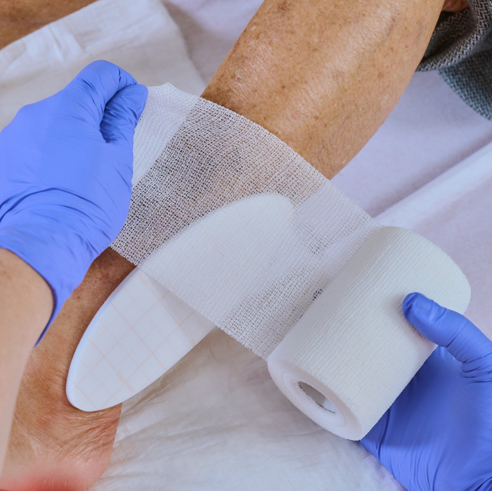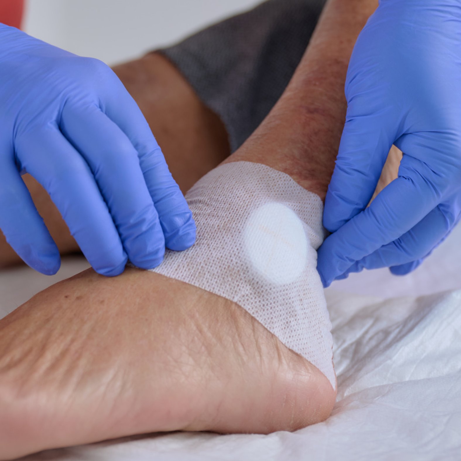 - Erleichtert die Wundversorgung an schwierigen Köperstellen, z.B. am Knöchel, den Zehen, an Achsel, Ellenbogen oder Leiste