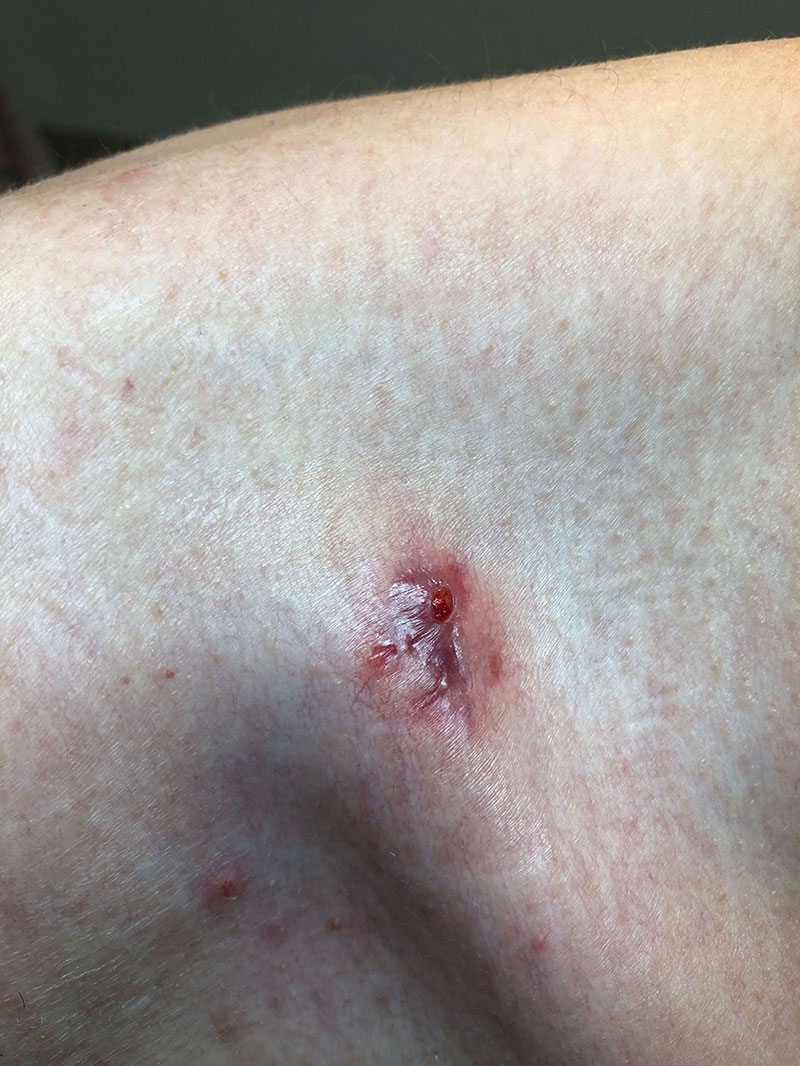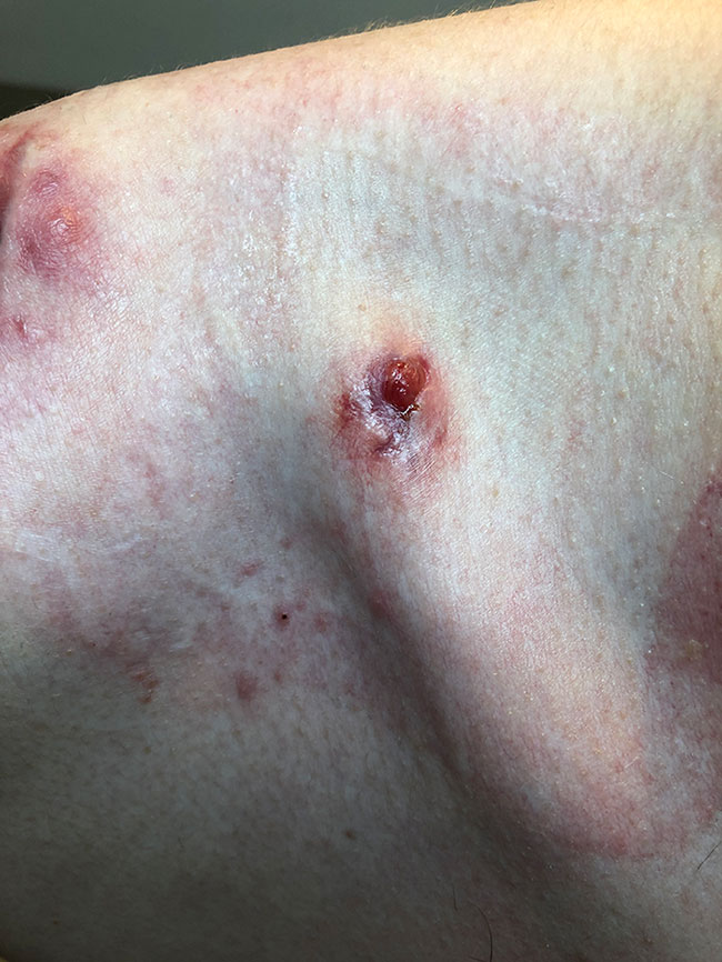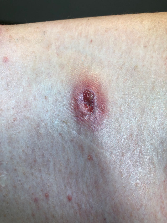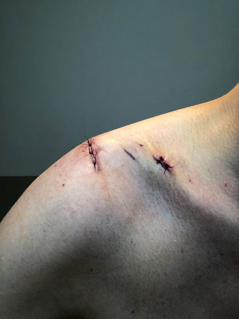 Aufgrund einer operativen Metallentfernung nach einem zurückliegenden lateralen Schlüsselbeinbruch kam es bei dem Patienten zu einer lokalen Infektion der Operationswunde, aus der eine Wundheilungsstörung resultierte. Im weiteren Wundheilungsverlauf kam es noch zu zwei weiteren Komplikationen: Taschenbildung und Hypergranulation.