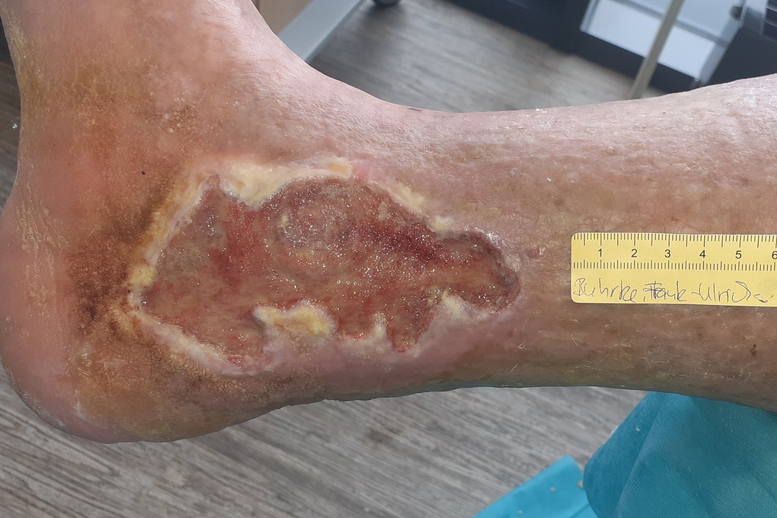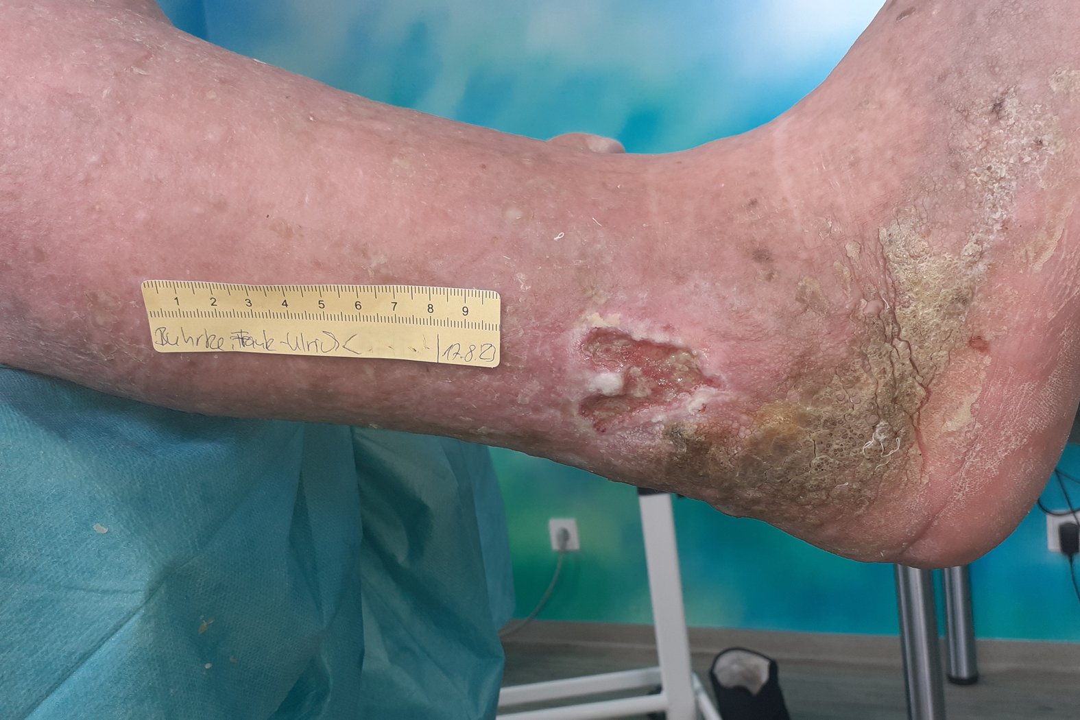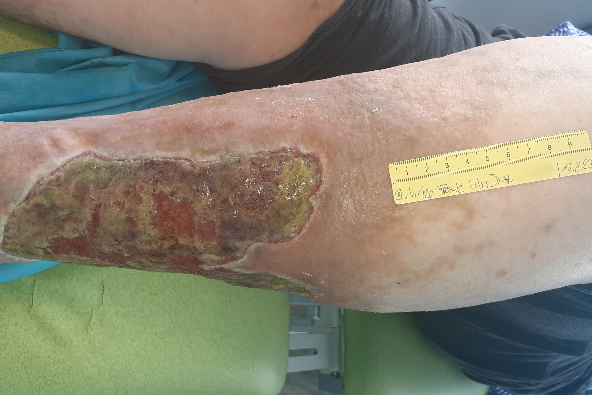In der Folge verbesserten sich die subjektive Lebensqualität und die Wundsituation deutlich. Eine vollständige Heilung der Wunden konnte zwar bisher nicht erreicht werden (Foto 10-12), doch die Wundsituation ist derzeit stabil und es kann darüber nachgedacht werden, auf einen Wundverschluss hinzuwirken, statt nur eine weitere Verschlimmerung zu verhindern.