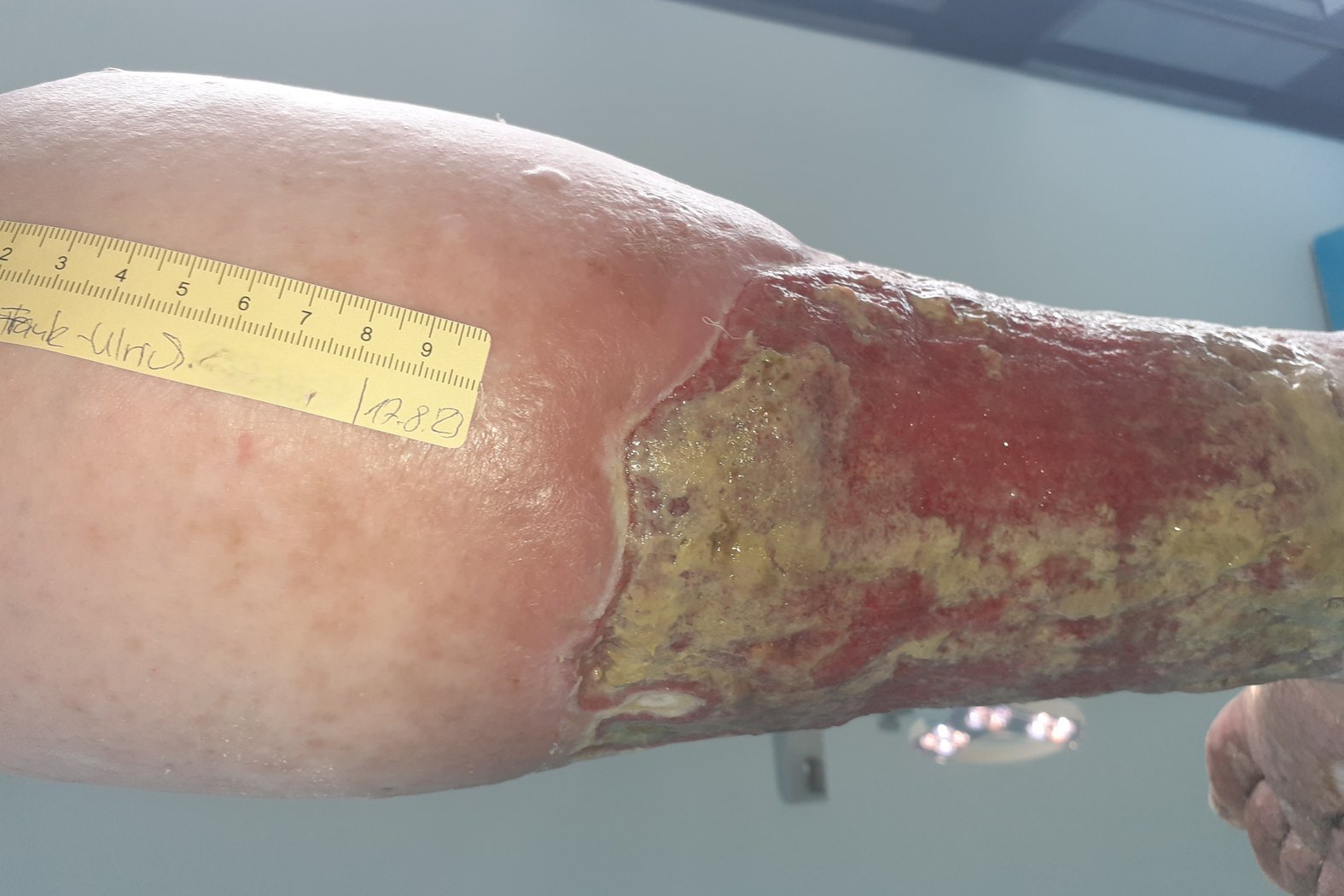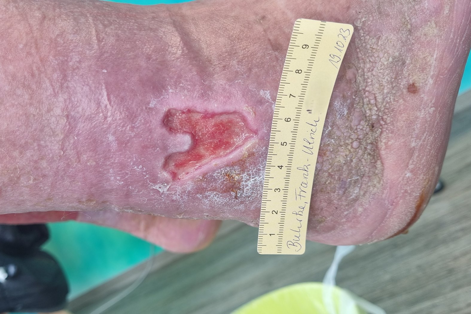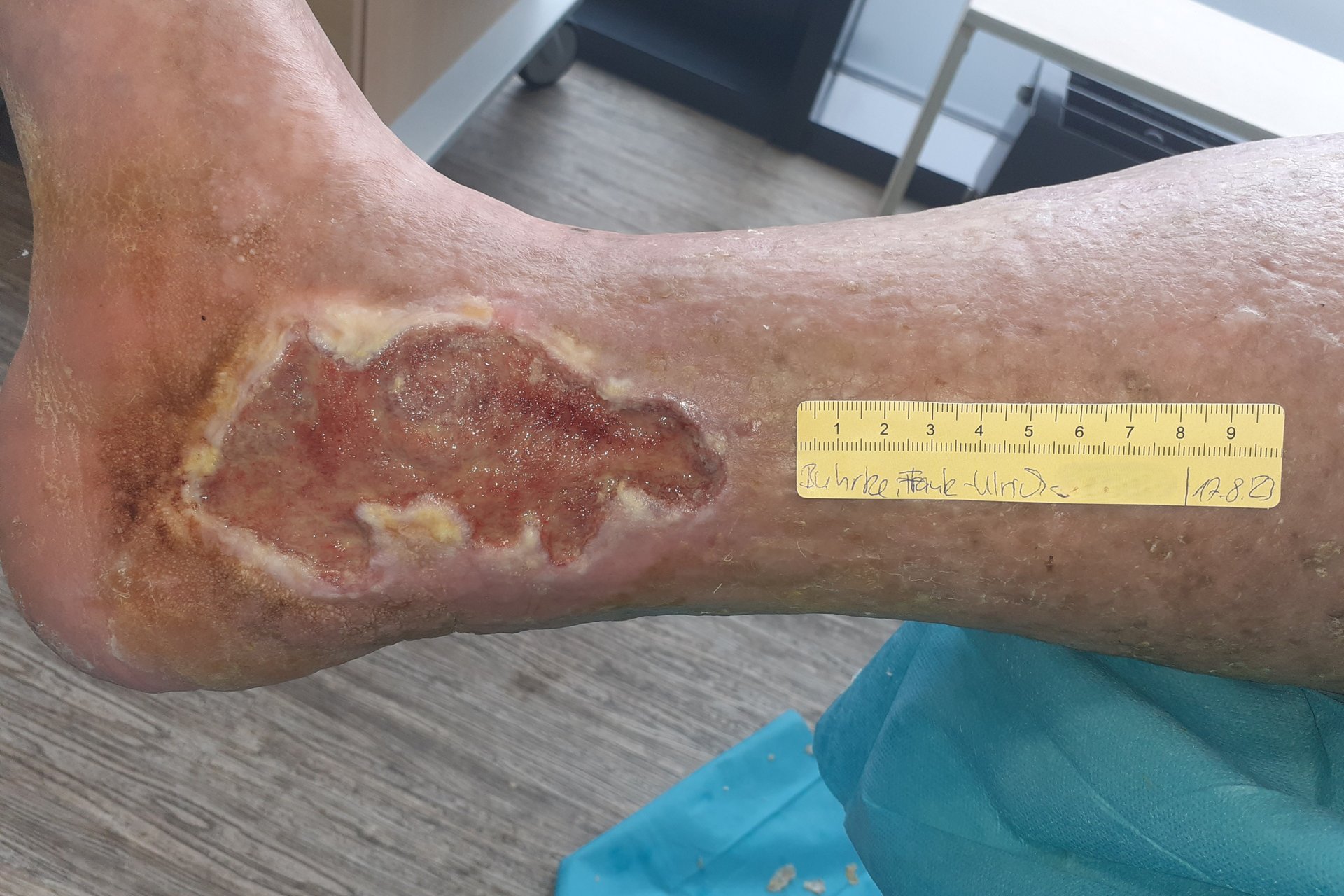 In der Folge verbesserten sich die subjektive Lebensqualität und die Wundsituation deutlich. Eine vollständige Heilung der Wunden konnte zwar bisher nicht erreicht werden (Foto 10-12), doch die Wundsituation ist derzeit stabil und es kann darüber nachgedacht werden, auf einen Wundverschluss hinzuwirken, statt nur eine weitere Verschlimmerung zu verhindern.