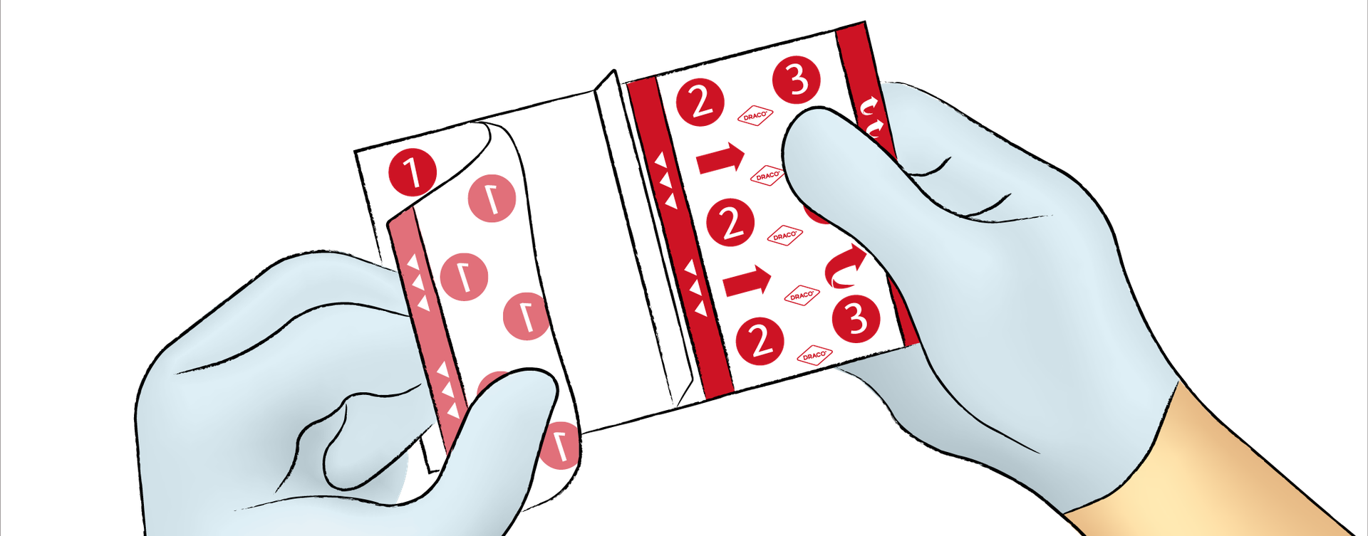 - den zweiten Teil der Flügel lösen und über die gesamte Wundauflage kleben