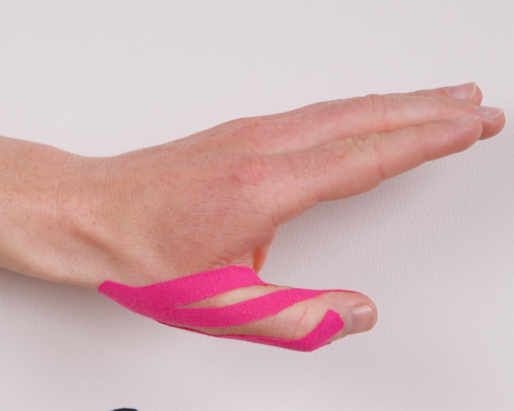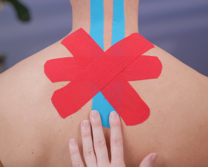 Nach dem Anlegen des Tapes muss der Kleber durch Anreiben aktiviert werden.