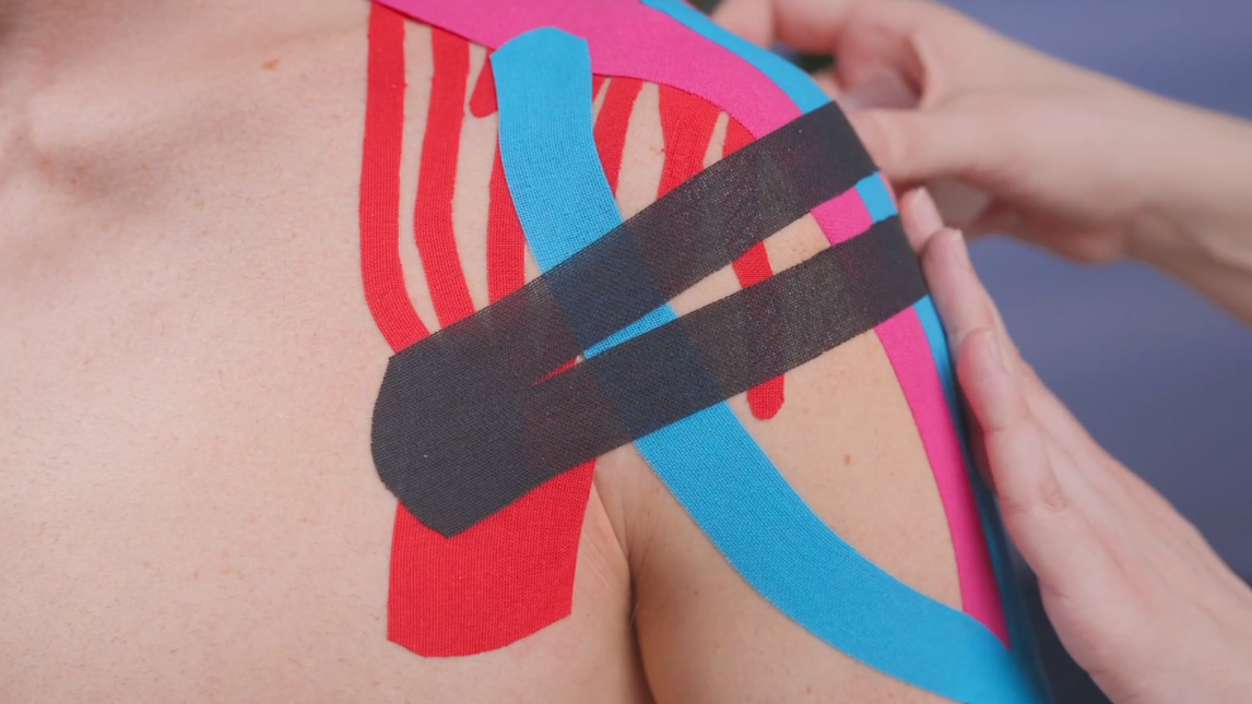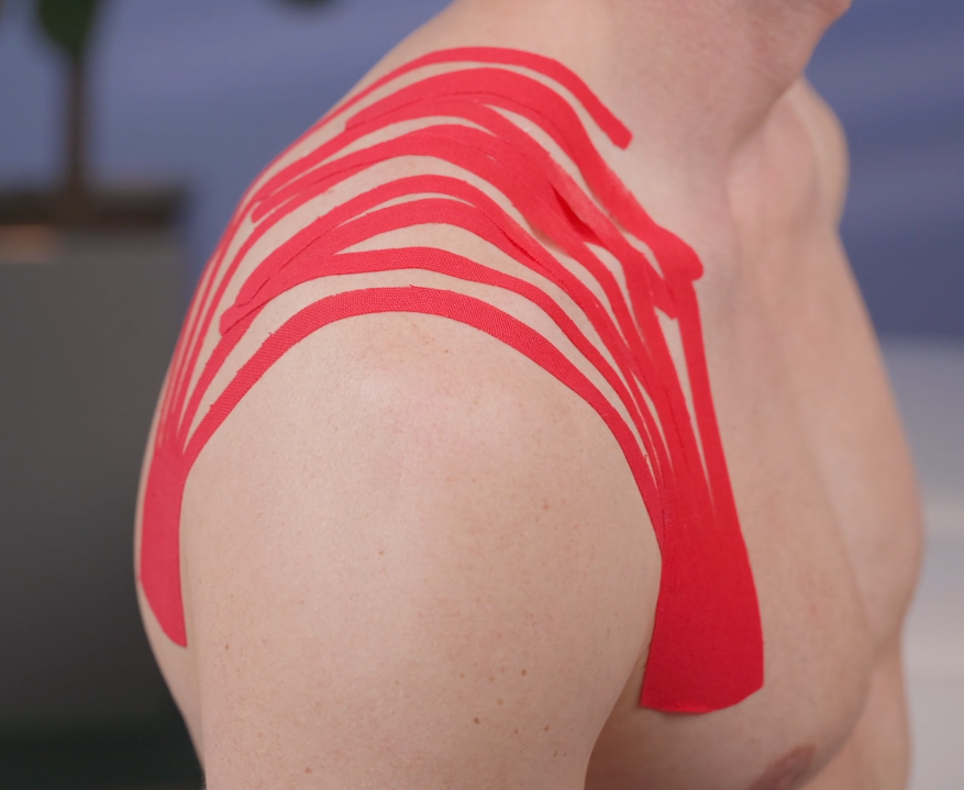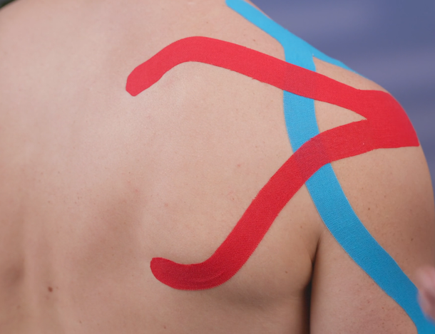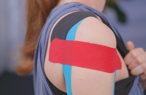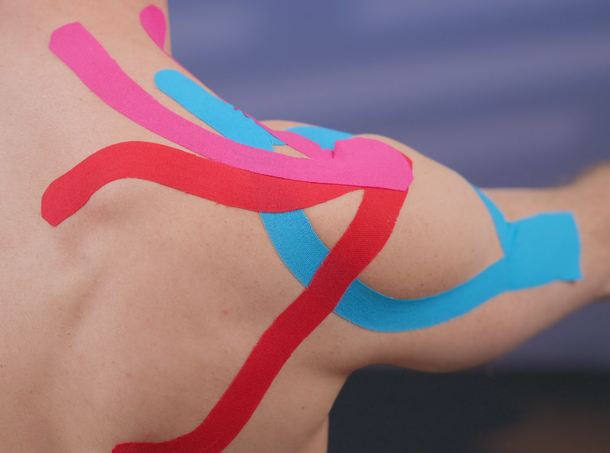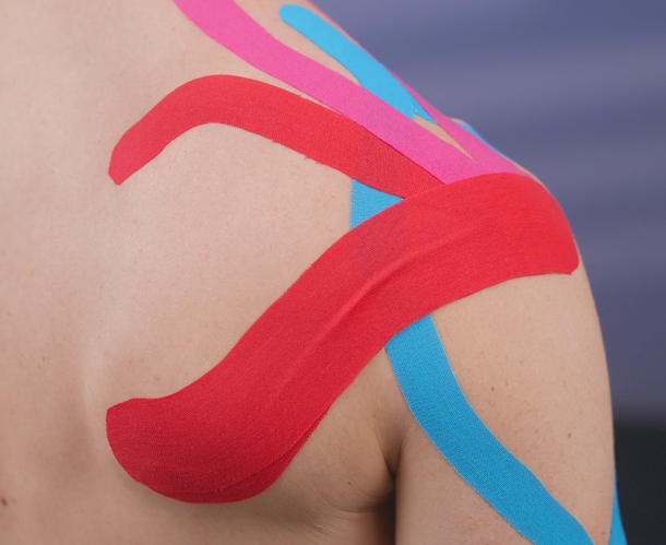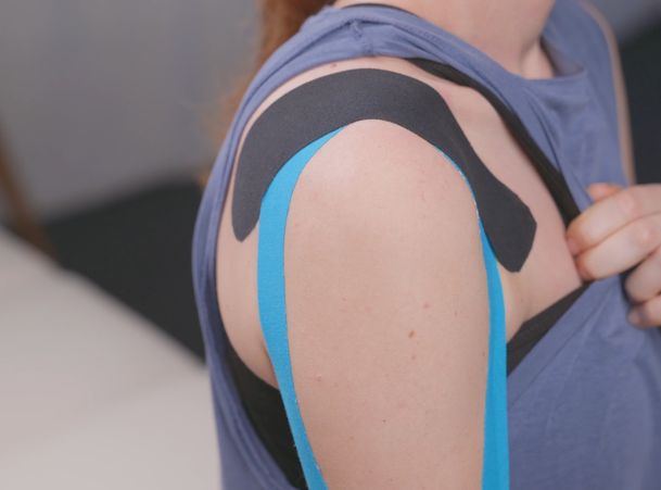 Bei Schulterbeschwerden können sowohl kinesiologisches Tape als auch Sporttape zum Einsatz kommen - je nach therapeutischem Ziel.