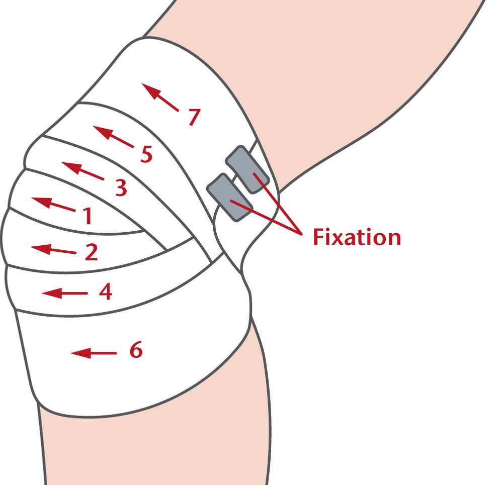 | Material | Elastische Binde, Schlauchbinde, Pflasterbinde (funktioneller Verband, Tape-Verband), Zinkleimbinde |