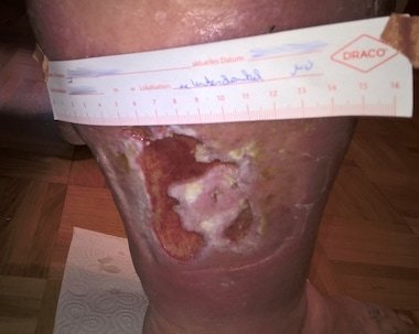 Tiefe offene Wunden am Bein gepaart mit den für Ulcus Cruris einhergehenden Durchblutungsstörungen stellen Patienten gleichermaßen wie Fachpersonal vor Herausforderungen.