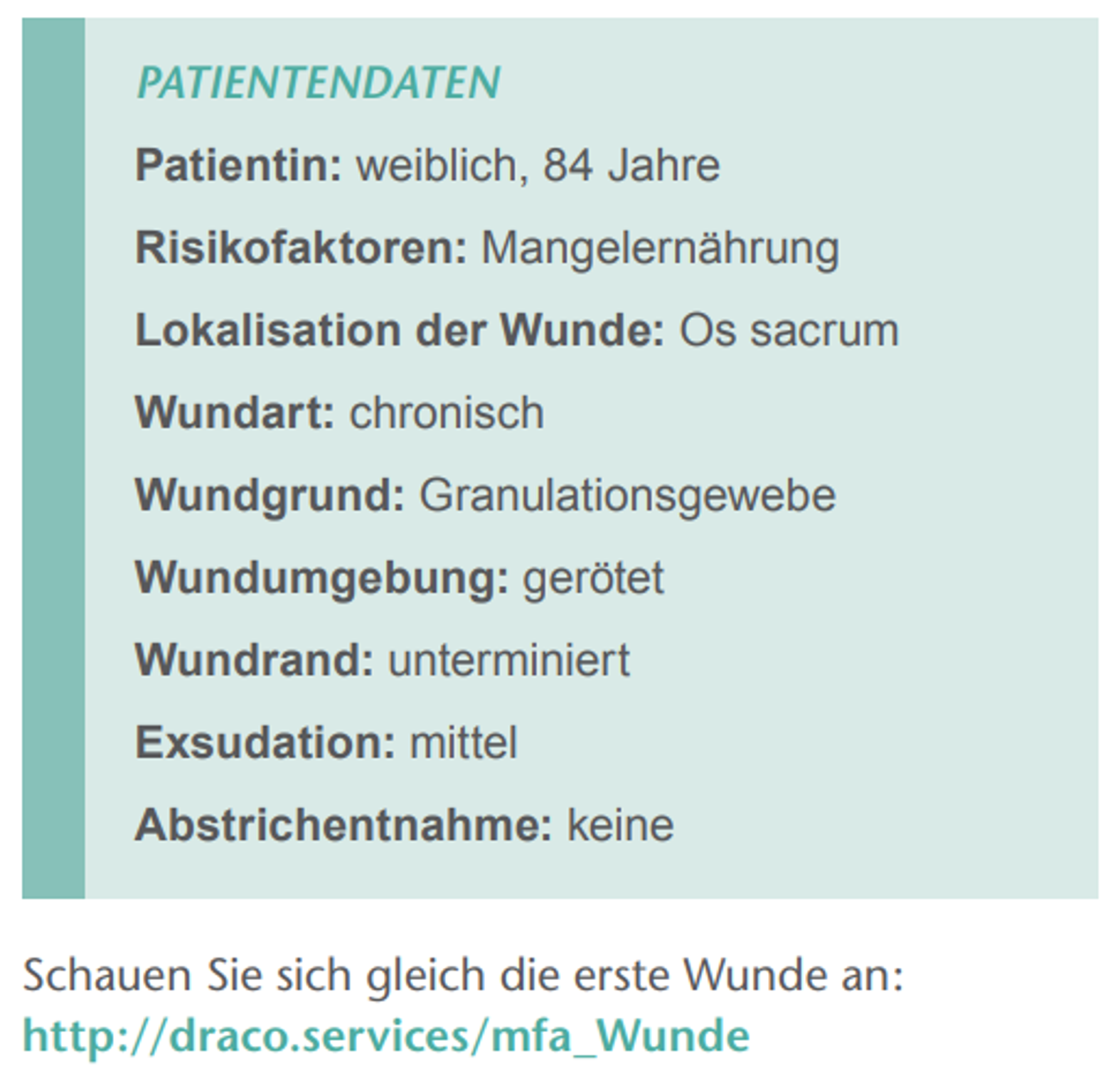 Später wurde daraus die „Wunde des Monats“, die neben der „MFA aktuell“ ab 2021 auch auf draco.de veröffentlicht wurde – das erste Fallbeispiel war geboren. Damals ging es um dieses Fallbeispiel eines Dekubitalulcus, das mit einer Schwenklappenplastik behandelt wurde. Übrigens: der damals abgedruckte Link http://draco.services/mfa_Wunde funktioniert auch heute noch und führt zur Fallbeispiel-Übersichtsseite.