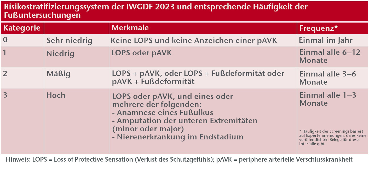 Einteilung und Zuordnung zu Risikostufen (z. B. IWGDF-Risikostufen)