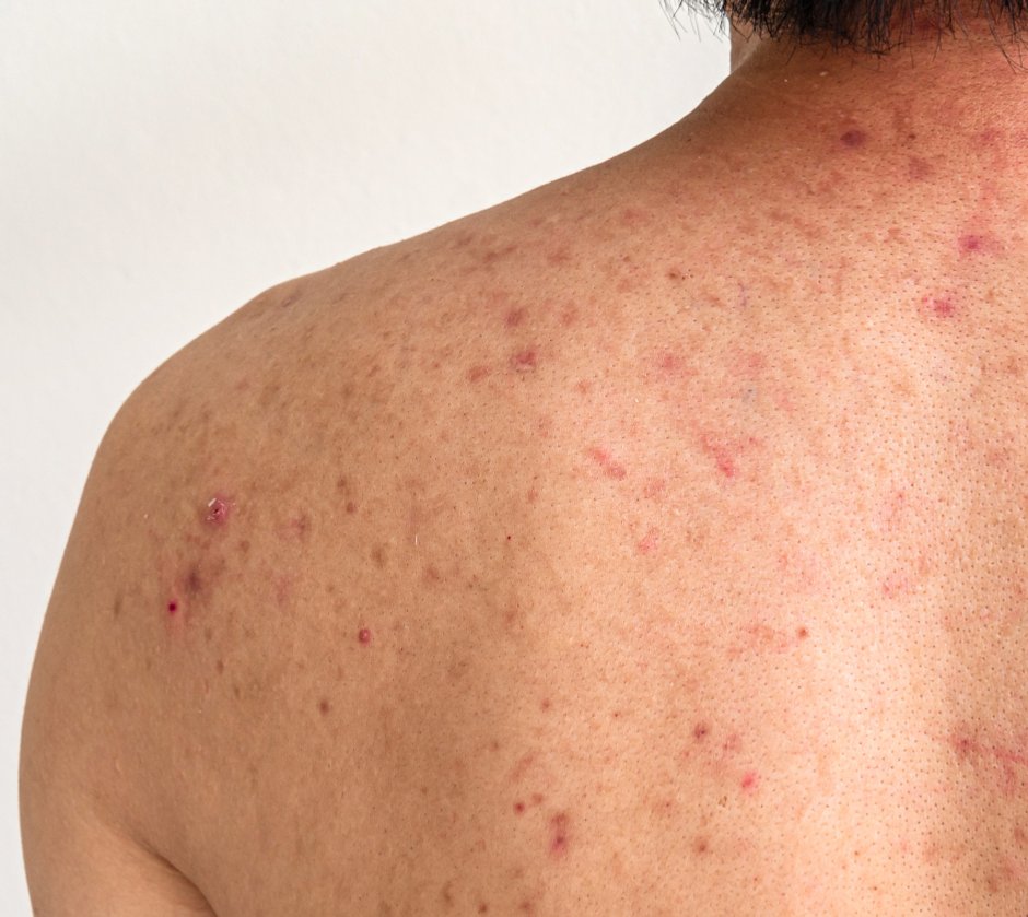 Die postinflammatorische Hyperpigmentierung ist eine übermäßige Pigmentierung der Haut, die nach einer Entzündung auftreten kann. Wenn die Haut aufgrund von u.a. Akne, Ekzemen oder Verletzungen gereizt oder beschädigt wird, kann sie als Reaktion auf die entzündlichen Hautveränderungen verstärkt Melanin produzieren. Diese Melaninanhäufung führt zu dunklen bräunlich-grauen Hautflecken, die je nach Hauttyp und Intensität der vorangegangenen Entzündung unterschiedlich intensiv sein können. Werden beispielsweise Pickel oder Papeln durch Ausdrücken oder „Knibbeln“ manipuliert, steigt die Wahrscheinlichkeit für eine postinflammatorische Hyperpigmentierung. Im Gegensatz zu Narben ist eine postinflammatorische Hyperpigmentierung oft flach und glatter. Besonders Menschen mit stark pigmentierter Haut sind anfällig für postinflammatorische Hyperpigmentierung, da sie eine höhere Melaninproduktion haben.