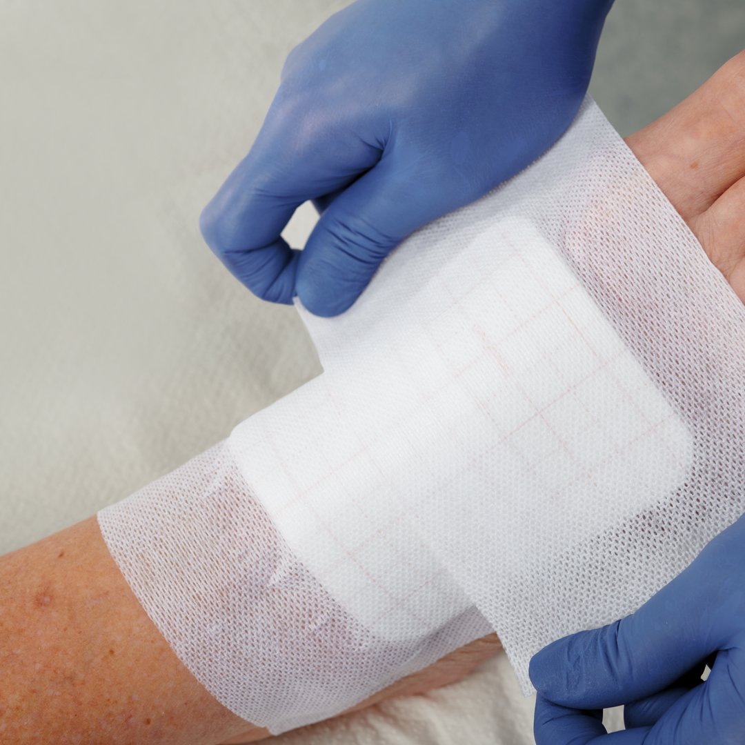 DracoFixiermull stretch mit Easy-Fix-Flügeln ist ein elastisches, hypoallergenes Klebevlies zur vollflächigen Verbandfixierung.