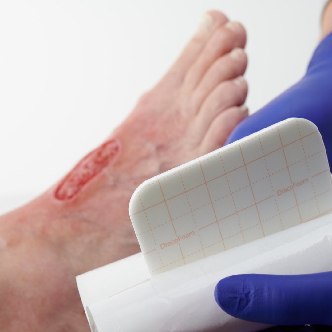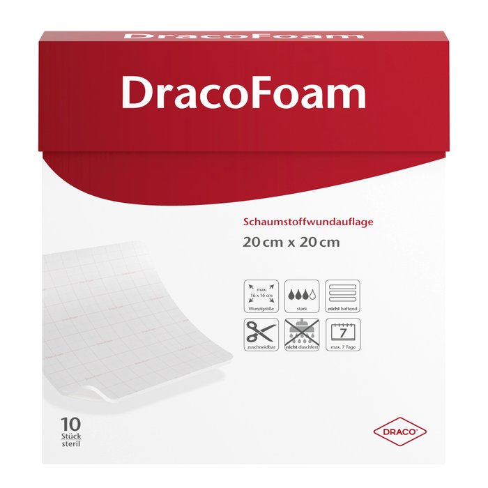 DracoFoam ist eine nichthaftende Schaumstoffwundauflage zur Versorgung von Wunden mit hohem Exsudataufkommen.