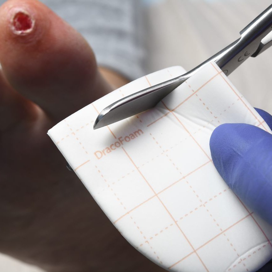 DracoFoam Zehenkappe ist geeignet für Wunden mit schwachem bis mäßigem Exsudataufkommen, z. B. oberflächliche und tiefere akute und chronische Wunden am Zeh oder Finger.