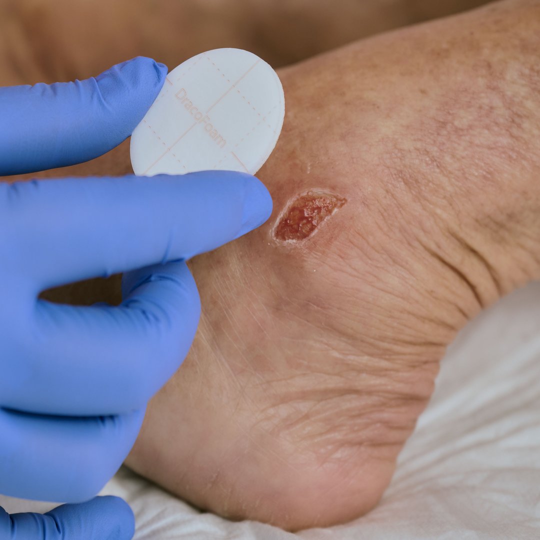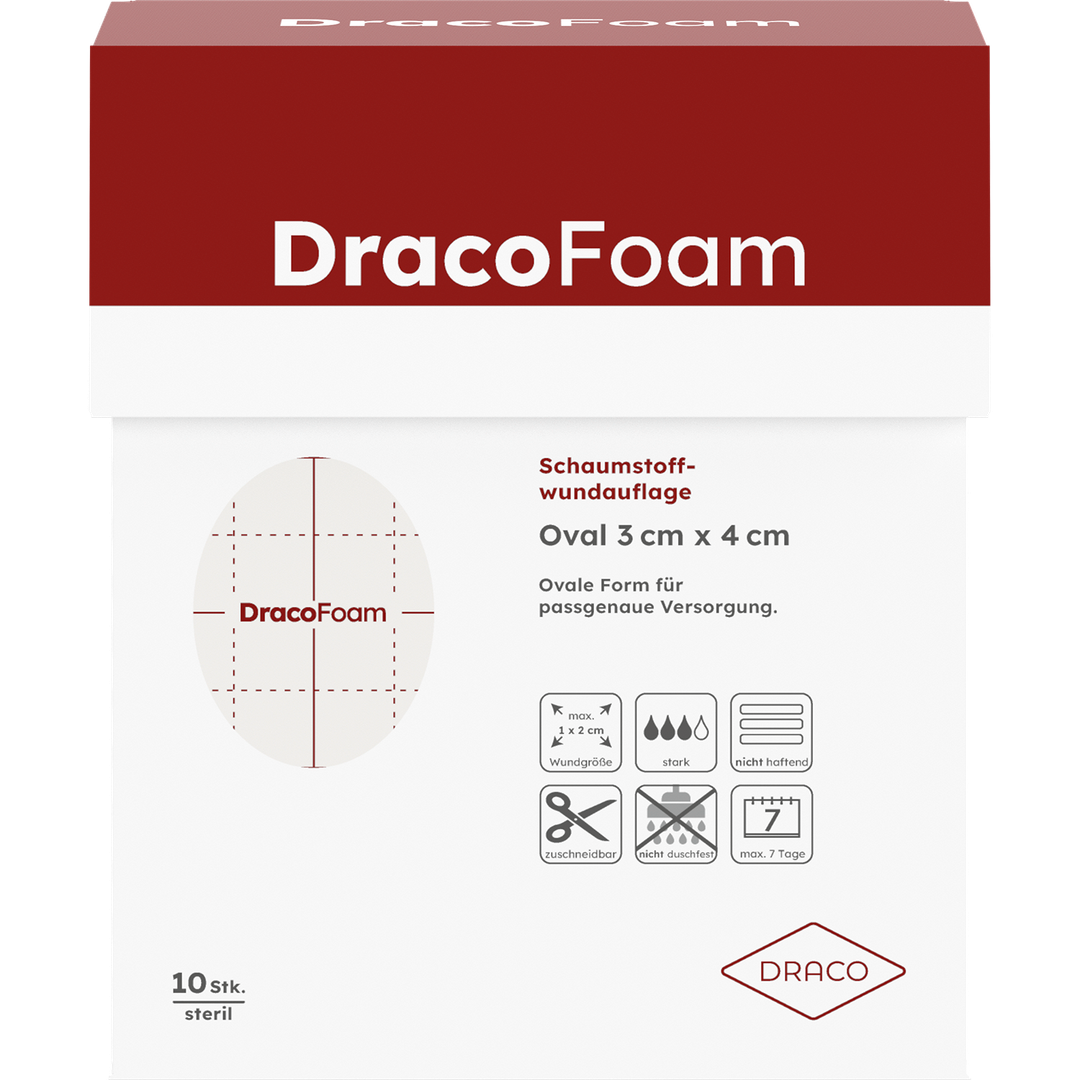 DracoFoam oval zeichnet sich durch eine gute Verträglichkeit, schnelle und hohe Exsudataufnahme und Abdampfungsleistung aus. Durch die ovale Form ist es ideal für anatomisch anspruchsvolle Körperstellen mit komplexen Konturen, wie z.B. Ferse, Zehen, Ellenbogen, Knie oder Achsel.