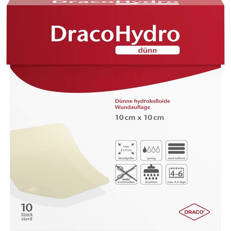 DracoHydro dünn ist ein wasserdichter Hydrokolloidverband (HCV) und kann auch beim Duschen verwendet werden. Die Wundauflage ist transparent und ermöglicht eine verbandwechselfreie Kontrolle des Wundzustands. DracoHydro dünn zeichnet sich durch hervorragende Modellierbarkeit und hohen Tragekomfort aus und ist auch zur Anwendung unter Kompression geeignet.