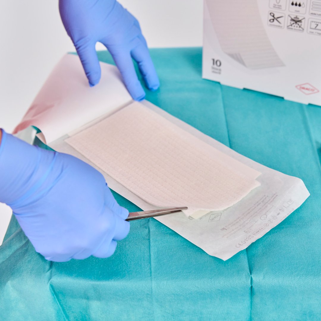 DracoHydrofaser kann über die Wundränder hinaus appliziert werden, da die vertikale Aufnahme des Exsudats das Mazerationsrisiko reduziert. Anschließend die Wunde mit einer geeigneten sekundären Wundauflage abdecken und mit dem bevorzugten Verbandmaterial fixieren. Je nach Wundzustand und Exsudatmenge kann DracoHydrofaser bei nicht infizierten Wunden bis zu 7 Tage auf der Wunde verbleiben.