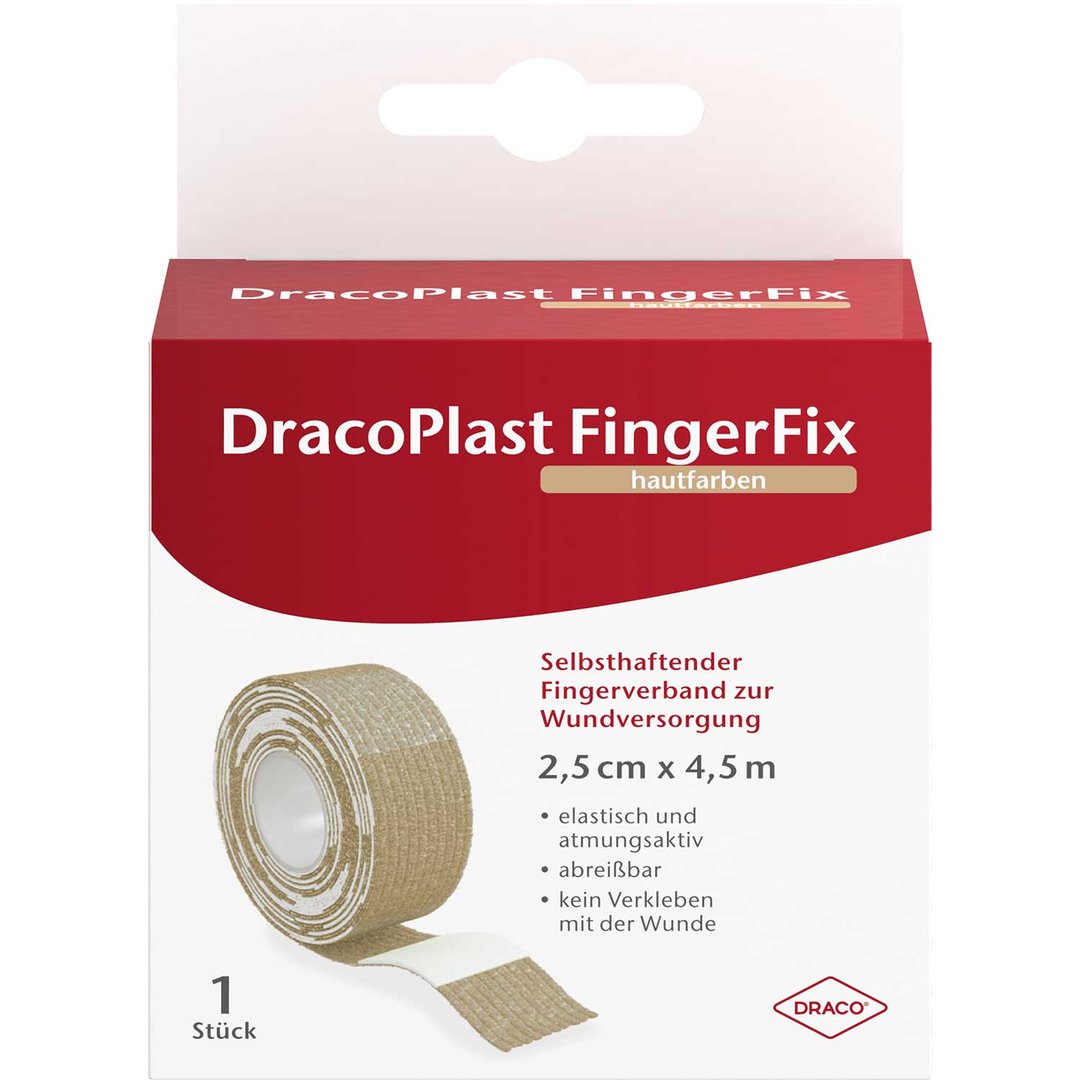 Der DracoPlast FingerFix ist ein selbsthaftender, elastischer Fingerverband auf der Rolle mit einem Wundkissen. DracoPlast FingerFix ist atmungsaktiv, verklebt nicht mit der Wunde oder Haaren und hinterlässt keine Kleberänder auf der Haut. Durch die leichte Abreißbarkeit ist er der ideale Begleiter für den Alltag. Erhältlich in 4 verschiedenen Farben.
