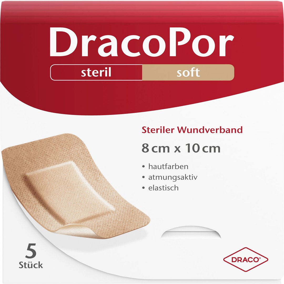 DracoPor Soft hautfarben ist ein steriler Wundverband für akute Wunden sowie zur Versorgung von postoperativen Wunden, Schnitt- oder Schürfwunden.