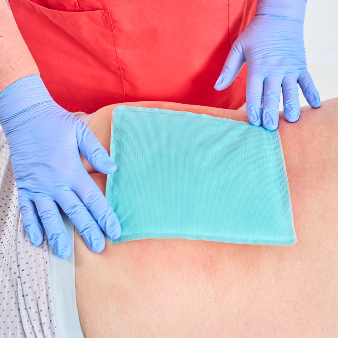Die Wundauflage hat eine hydrophobe, grüne Rückseite, die den Durchtritt von Feuchtigkeit minimiert. Diese Eigenschaft bietet Ihren Patienten/innen ein sicheres Gefühl und Schutz für Kleidung und Wäsche.