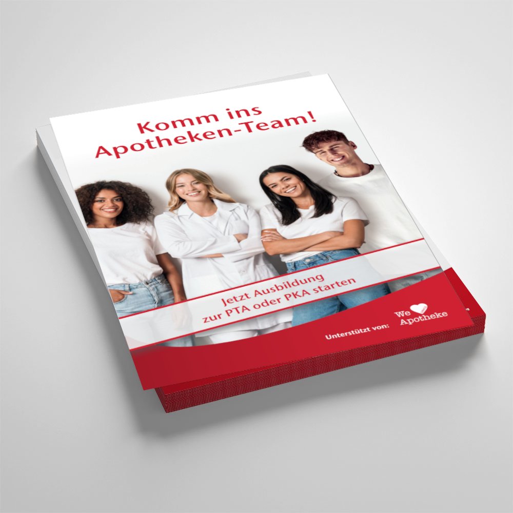 Wie möchten Sie dabei unterstützen, mehr junge Menschen für die Arbeit in der Apotheke zu begeistern. Daher haben wir in Zusammenarbeit mit PTA, PKA, Apothekerinnen und Apothekern einen Flyer zu den Berufsbildern der PTA und PKA entwickelt.