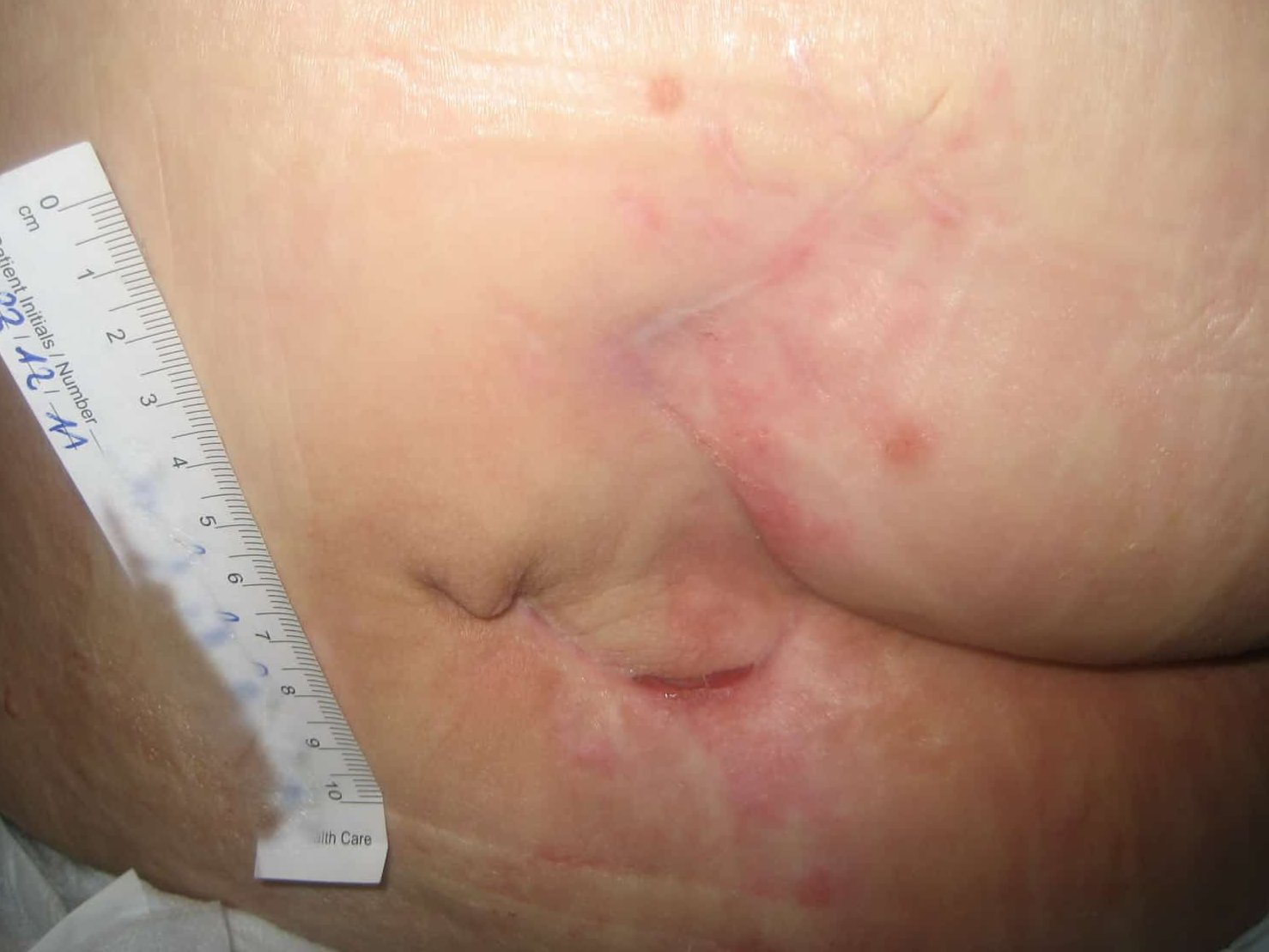 Für Wunden in der Gesäßregion besteht ein Infektionsrisiko durch warme und feuchte Stellen, in denen sich Bakterien stark vermehren können.