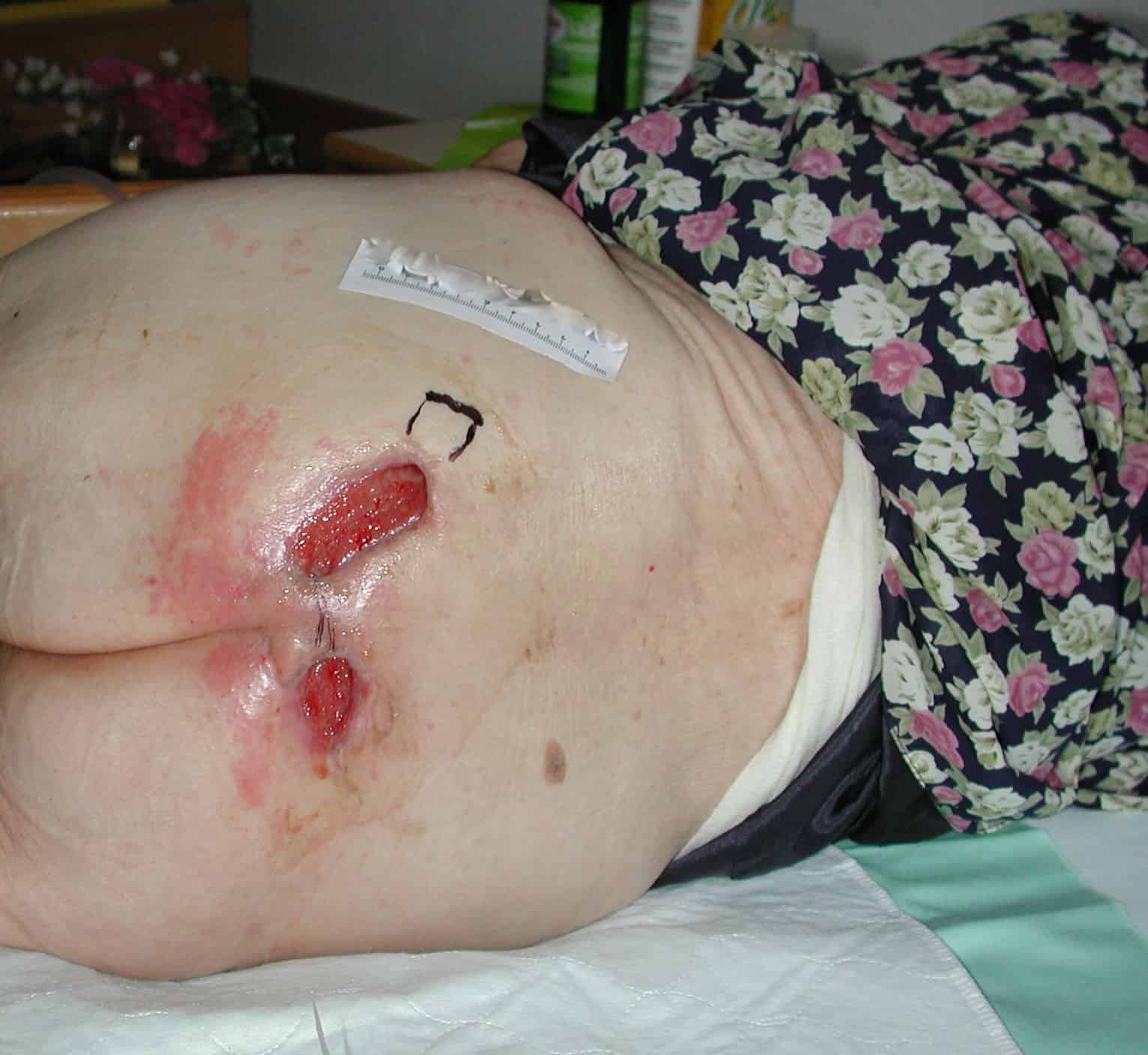 Insbesondere Menschen mit Bewegungseinschränkungen oder Immobilität, die viel auf dem Rücken liegen oder sitzen, schwitzen am Gesäß. Ein weiteres Risiko besteht bei harn- oder stuhlinkontinenten Personen mit Sakraldekubitus. Zusätzlich zur Feuchtigkeit können dann auch Bakterien aus dem Urin bzw. dem Darm in die Wunde gelangen und sich dort vermehren.