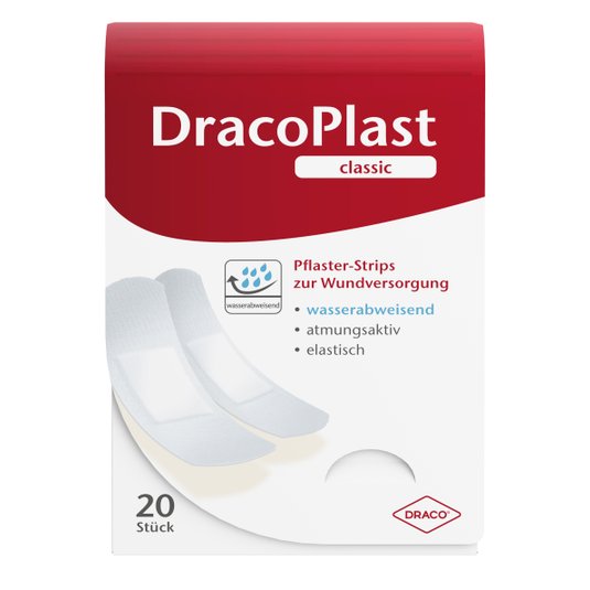 Ideale Wundauflagen verhindern ein Austrocknen der Wunde, ohne mit ihr zu verkleben und bieten Schutz gegen das Eindringen von Bakterien. Für kleinere Schürfwunden eignen sich die unsterilen Wundverbände von Draco®, wie DracoPlast Classic, DracoPlast Soft oder DracoPlast Soft Pflaster-Strips. Für Wunden an den Fingern oder Zehen empfiehlt sich der DracoPlast Classic Fingerverband. DracoPlast Waterproof ermöglicht ein schmerzfreies Duschen und verhindert, dass Wasser in die Wunde gelangen kann.