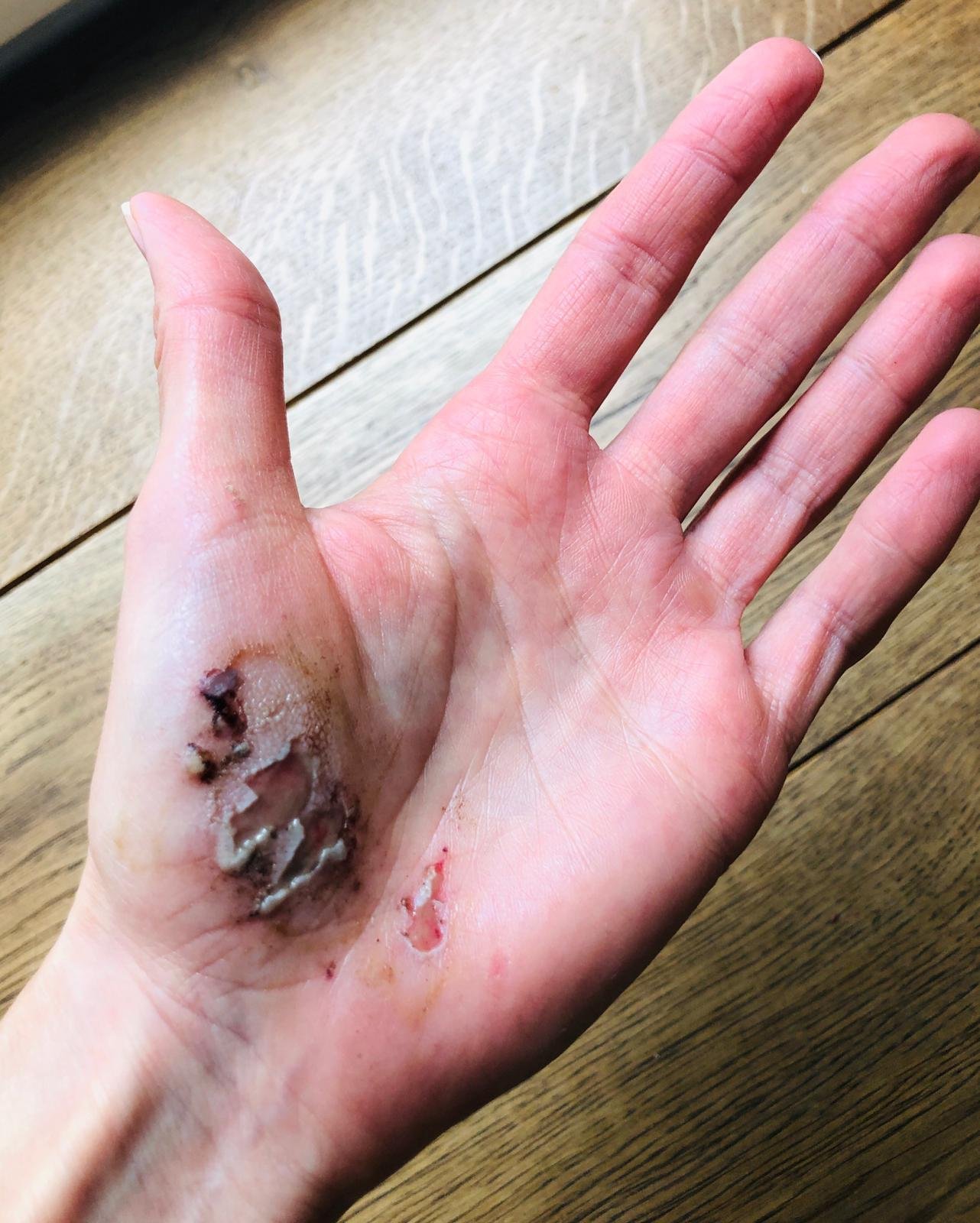 Typisch für Schürfwunden ist ein Brennen und Nässen der meistens großflächigen Wunde.