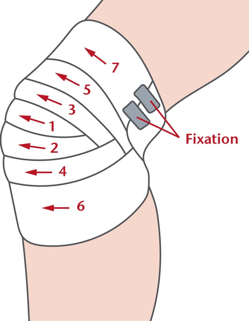 Fachgerechte Wundauflagen und -fixierungen sitzen faltenlos, schnüren nicht ein und behindern bestenfalls die Gelenkbewegung nicht. Locker sitzende Wundauflagen verursachen mechanische Reize auf der Wunde und verzögern die Wundheilung.