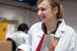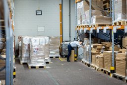 Katrin Haßelberg (Leiterin Professional Services) unterstützt das Lager der WÜT in Dortmund.