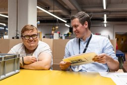 Manchmal reicht ein kleiner Perspektivwechsel und die Welt sieht ganz anders aus. Genau dafür wurde die Aktion Schichtwechsel ins Leben gerufen – Menschen aus Werkstätten für Menschen mit Behinderungen tauschen für einen Tag den Arbeitsplatz mit Menschen ohne Behinderung. Jannis Augustin (Leiter Digitales Marketing) bei dem Schichtwechsel mit Ingrid.