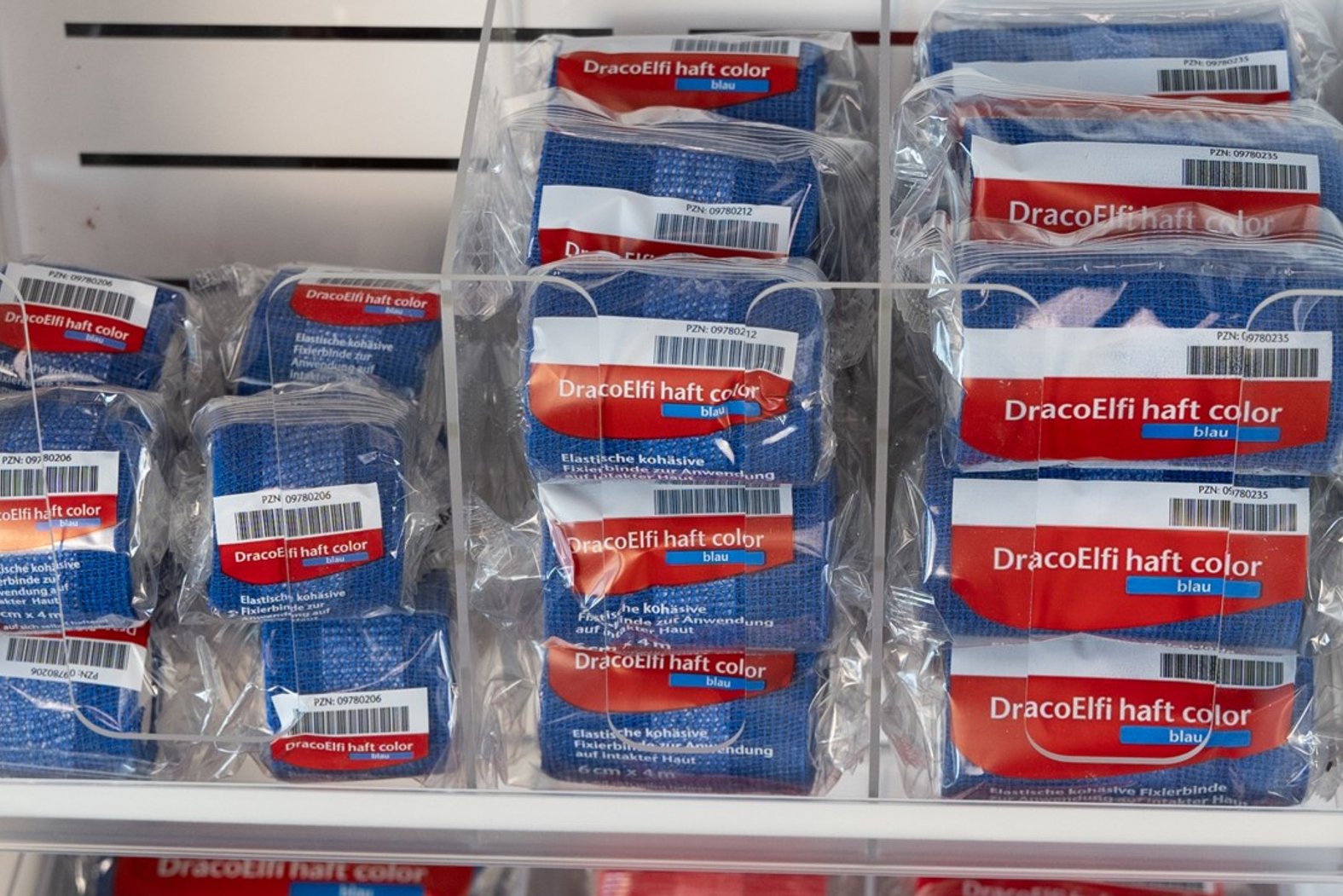 Der Aufsteller bietet Platz für 505 Packungen unseres Pflastersortiments, unserer Tapes, Mullkompressen, sterilen Wundverbände sowie Fixier- und Idealbinden – kompakt und übersichtlich! Die seitlich angebrachten Fühlmuster unterstützen Beratungsgespräche und bieten dem Endverbraucher weitere Informationen.