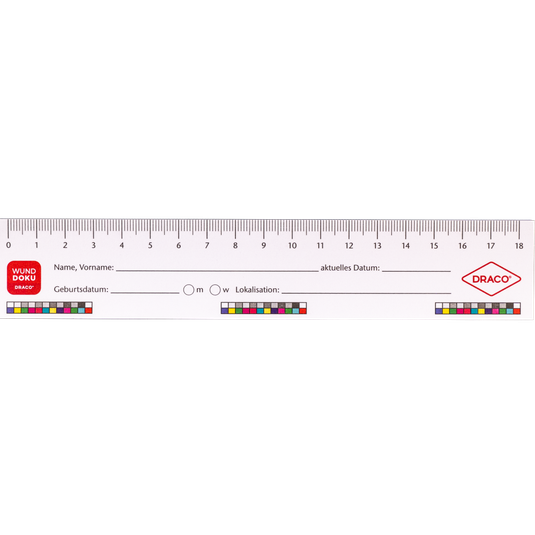- Beschriften Sie das Wundlineal und positionieren Sie es immer an derselben Stelle sowie mit genügend Abstand zur Wunde.