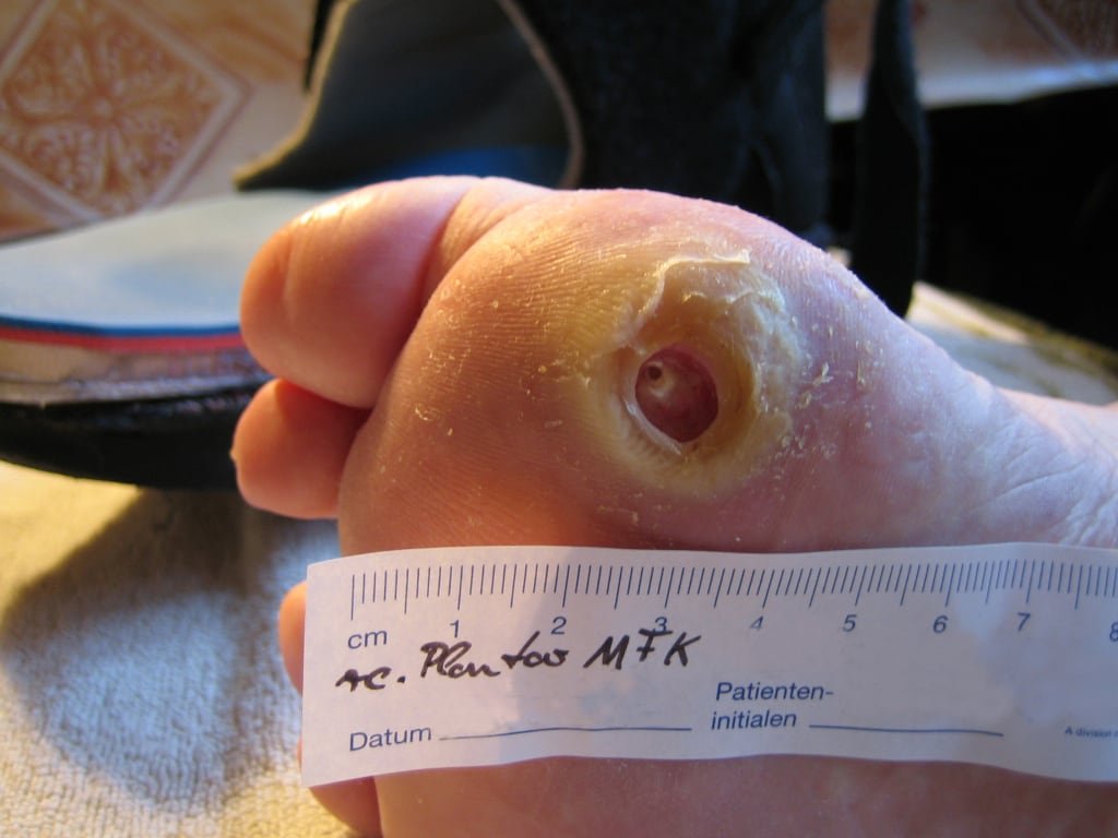 Im Beispiel eine Wunde bedingt durch Diabetisches Fußsyndrom, Neuropathie.