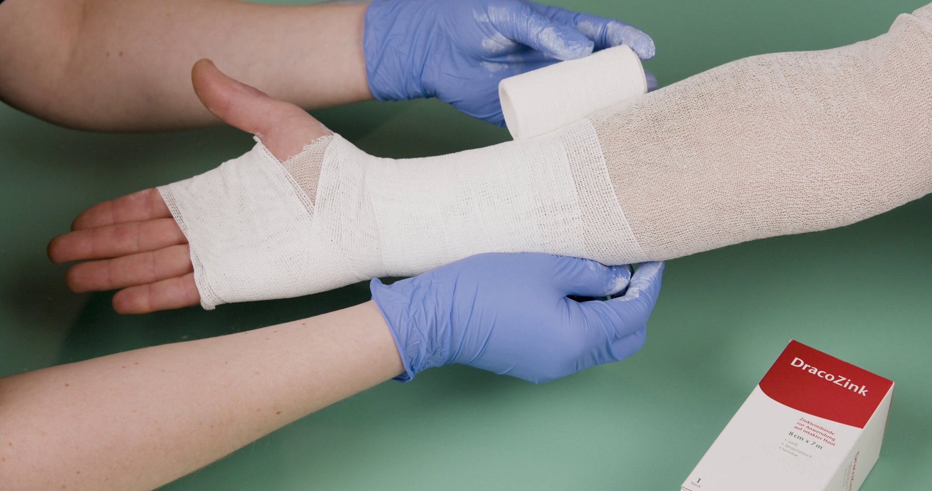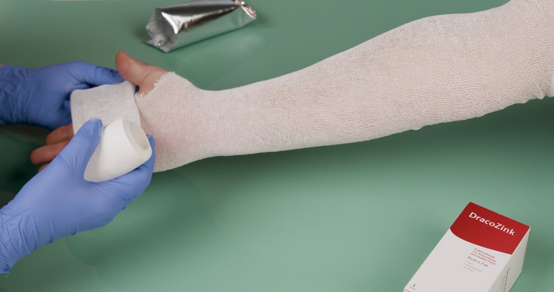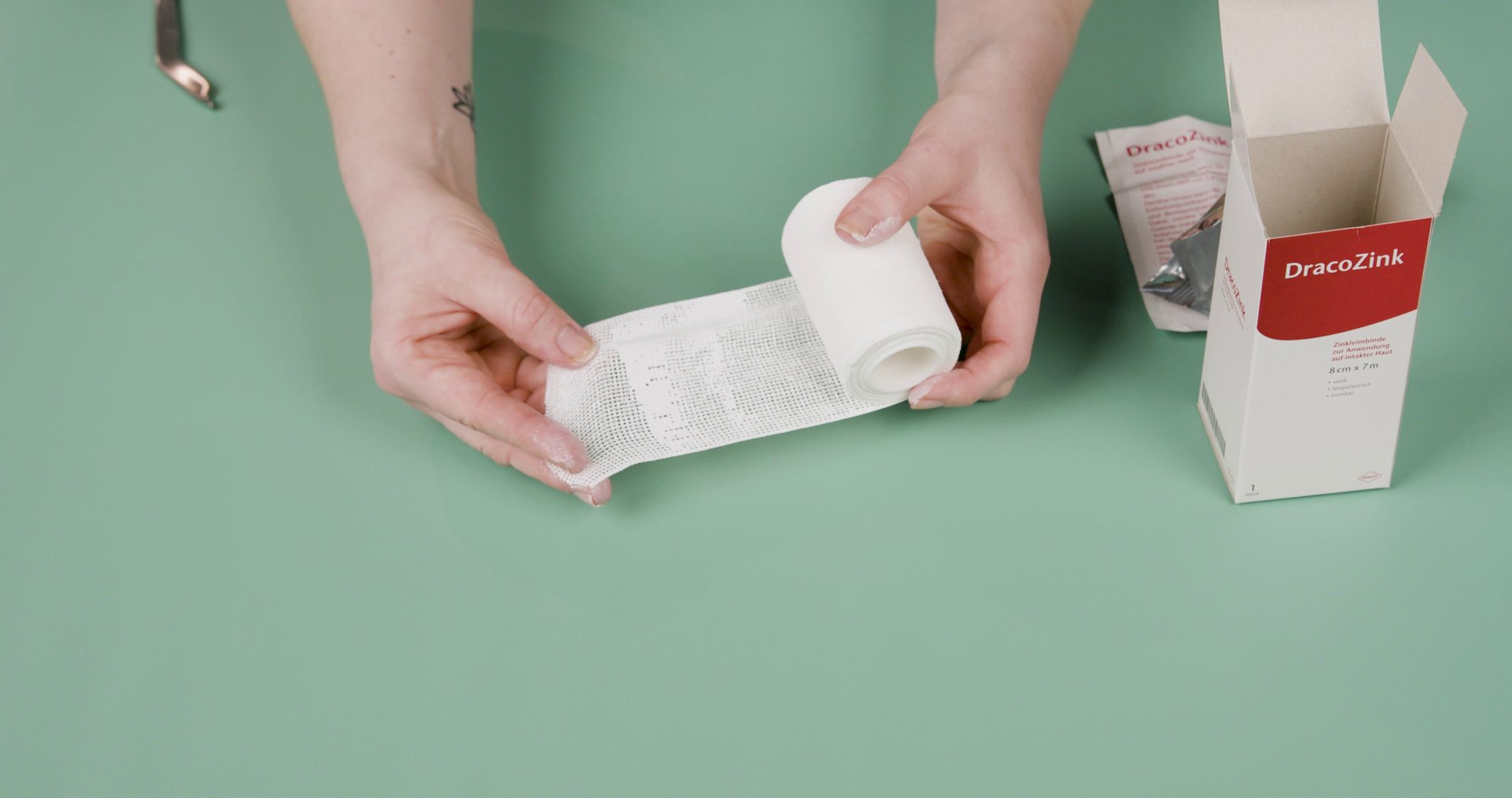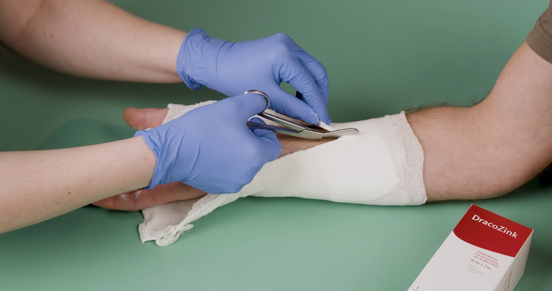 Das Anlegen eines Zinkleimverbandes erfordert eine korrekte Anlagetechnik. Er sollte ausschließlich durch medizinisches Fachpersonal angelegt werden.